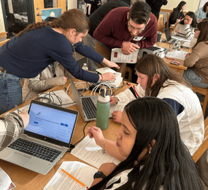Thirty students from Plymouth North and Plymouth South participated in this one day, in-house field trip, completing hands on projects like connecting a switch, firewall, and access point, and programming the devices for a wireless network. Industry professionals from Blue Mantis, Milton CAT, Climb Channel Solutions, and Fortinet supported students as they problem solved in real time.